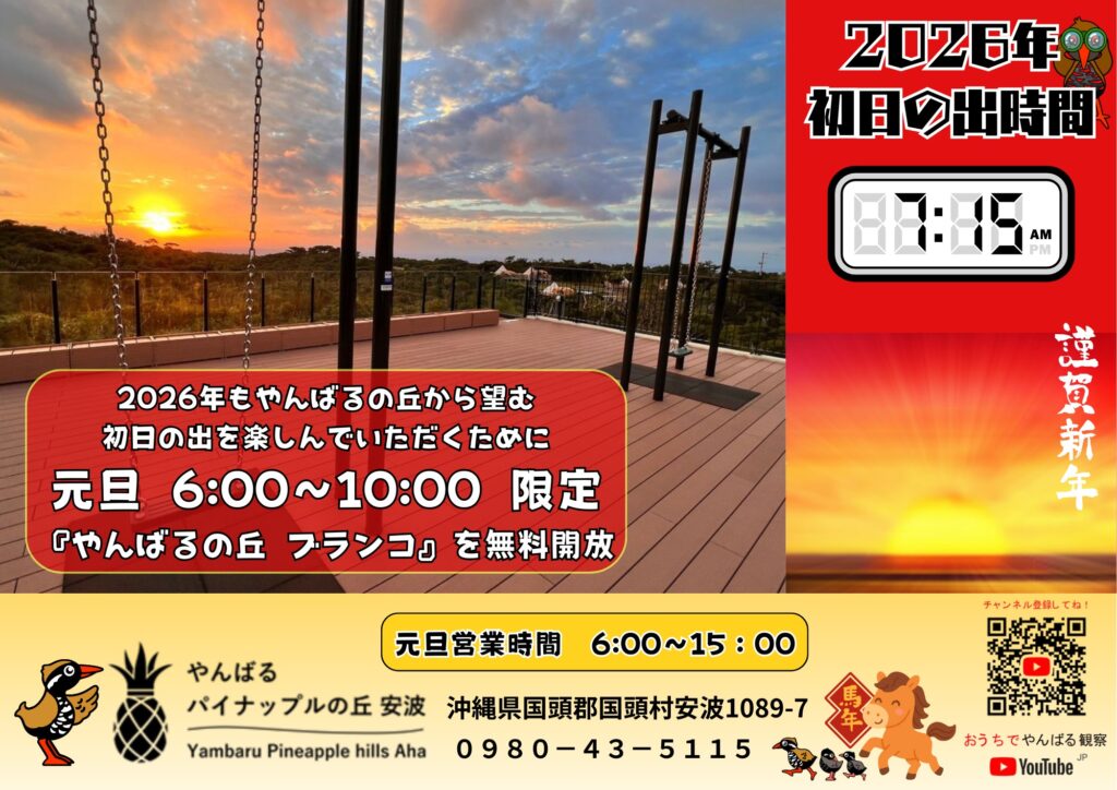 いつも【道の駅 やんばるパイナップルの丘 安波】をご利用頂き誠にありがとうございます。年末年始の営業時間についてお知らせいたします。